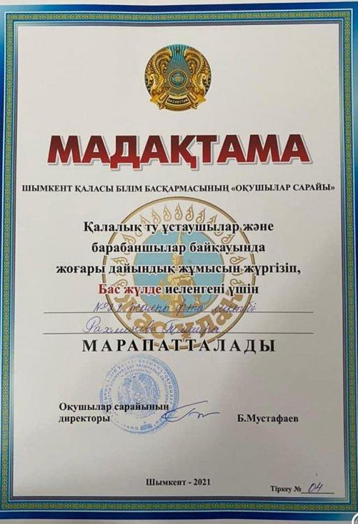 Шымкент қаласы білім басқармасы “Оқушылар сарайының” ұйымдастыруымен 31.03.2021 күні қалалық “Ең үздік ту ұстаушылар және барабаншылар” байқауы өтті. Қалалық байқауда №28 жалпы орта білім беретін мектебінің рәміздік тобы бас жүлдеге ие болды.