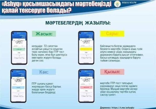 Көк – ПТР-тестілеу нәтижесі жоқ, COVID-19 жұқтырушымен байланыспағанын;