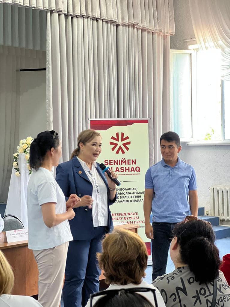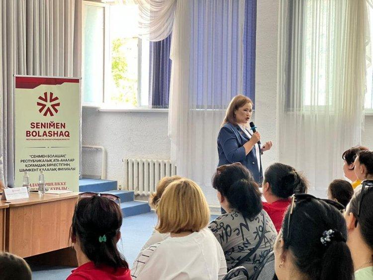 Тренингті «Сеніммен Болашақ» Республикалық ата - аналар қоғамының бірлестігінің Түркістан облыстық филиалының басшысы,психолог Ақбаян Жақыпова , Шымкент қаласы бойынша филиал басшысы Көпеев Асқар Досболұлы өткізіп, қатысушыларға бала тәрбиесінде ата- аналар жауапкершілігін арттыру ,бала құқығы мен қауіпсіздігі туралы жан-жақты түсіндірді.