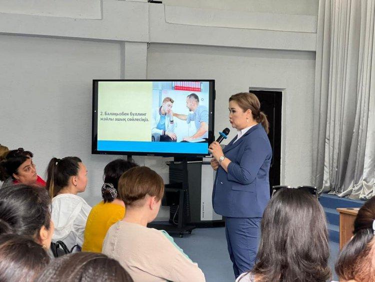 Шымкент қаласы № 28 жалпы орта білім беретін мектебінде «Буллинг пен Кибербуллинг» тақырыбында ата-аналармен психологиялық-педагогикалық тренинг өткізілді. Мақсаты:Буллинг және кибербуллингті мектеп оқушылары арасында болдырмау және алдын алу.