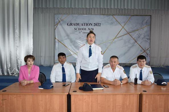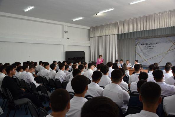 1 қыркүйек "Білім күні" мерекесіне орай мектебімізде оқушылар арасында қылмыстың алдын алу мақсатында Шымкент қаласы Полиция департаменті тарапынан Тергеу және Анықтау салаларының мамандарымен кездесу ұйымдастырылды. Жиынға қатысқандар әрбір оқушының сабаққа қатысуы, тәртібі теріс әрекеттерден аулақ болуы керектігі айтылып, талқыланды. Егеменді де өркениетті елдің бүгіні мен ертеңін өрге бастар - бүгінгі жастар.