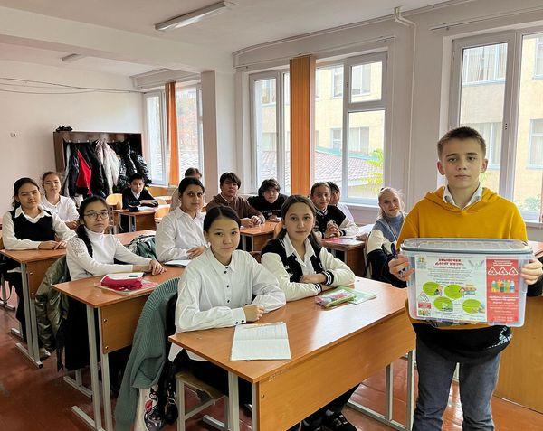 Мои ученики 7 «Г» класса Общей средней школы №28 участвуют в акции по сбору пластиковых крышек