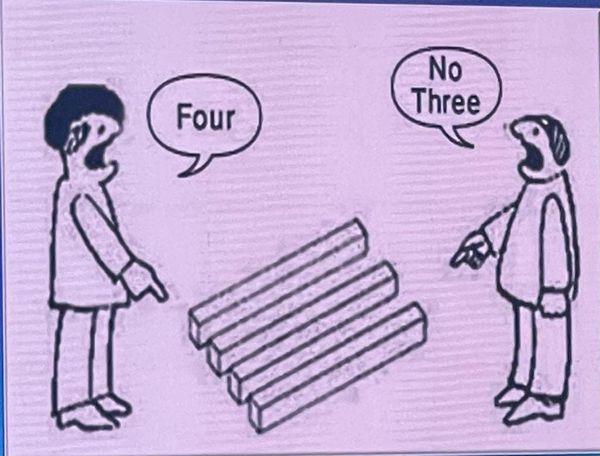 Два человека смотрят на одну и ту же картину, но с разных сторон. Поэтому видят разное. ( Моти Кристал "Навыки переговоров в образовательном процессе и повседневной жизни").
