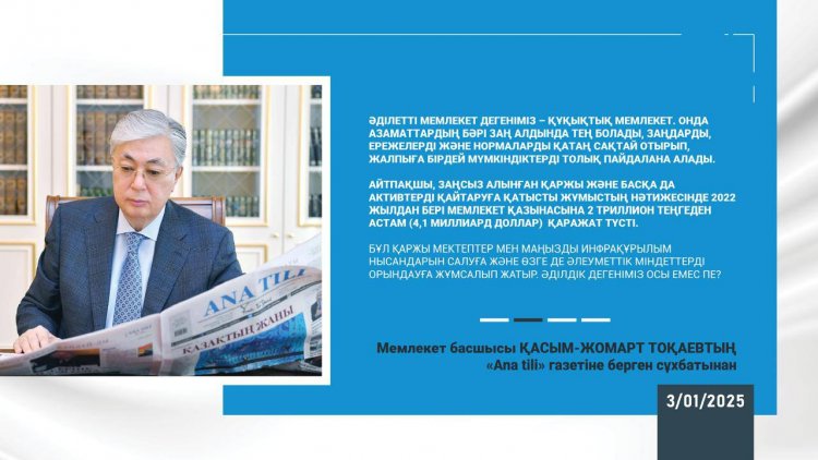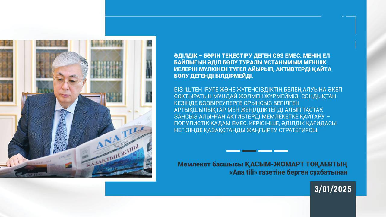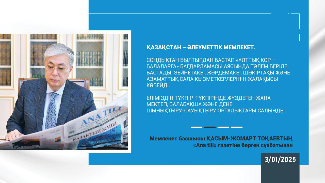 03 январь 2025 0 1 2 3 4 5 Қасым-Жомарт Тоқаев: «Мақсатым – экономиканы және егемендікті нығайту» Мемлекет басшысының «Ana tili» газетіне берген сұхбатыТолығырақ: https://www.akorda.kz/.../kasym-zhomart-tokaev-maksatym...#шымкент_қаласы_білім_басқармасы#шымкент_қаласы_әдістемелік_орталығы#шымкент_тәрбие_бөлімі#шымкент_оқуға_құштар_мектеп#shymkenttarbye#ШЫМБҚАҚ#ШЫМДЖБҚК#gani_beisembayev#gabit_syzdykbekov#oqu_agartu_ministrligi #bilim_shymkent