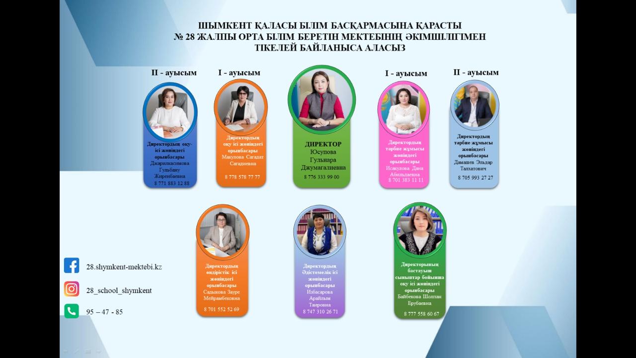 » » №28 жалпы орта білім беретін мектебінің әкімшілігі туралы мәлімет