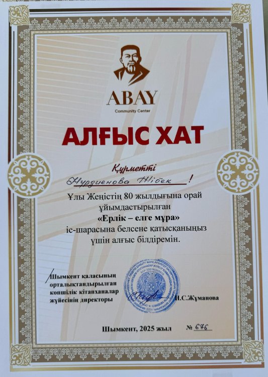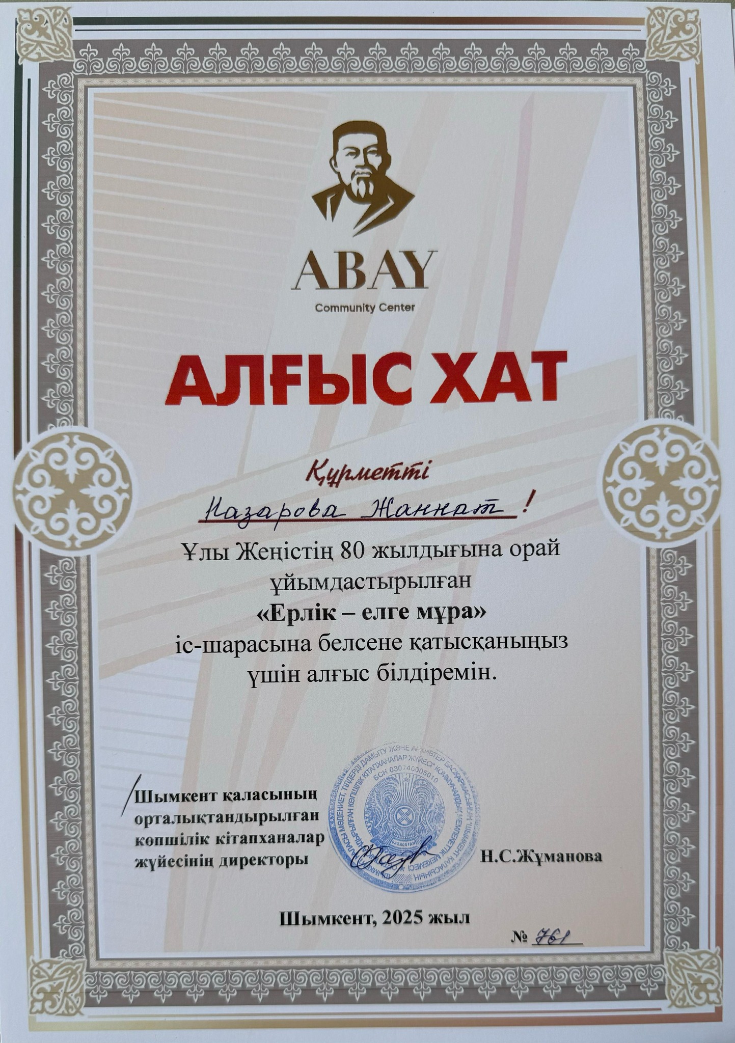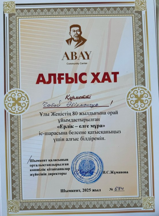Чабай Әбілмансұр ат салысып , “ Алғыс хаттармен” марапатталды.