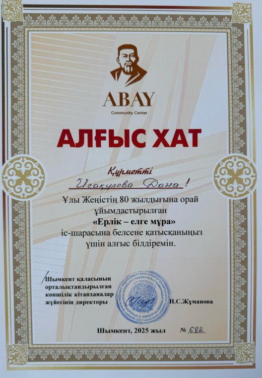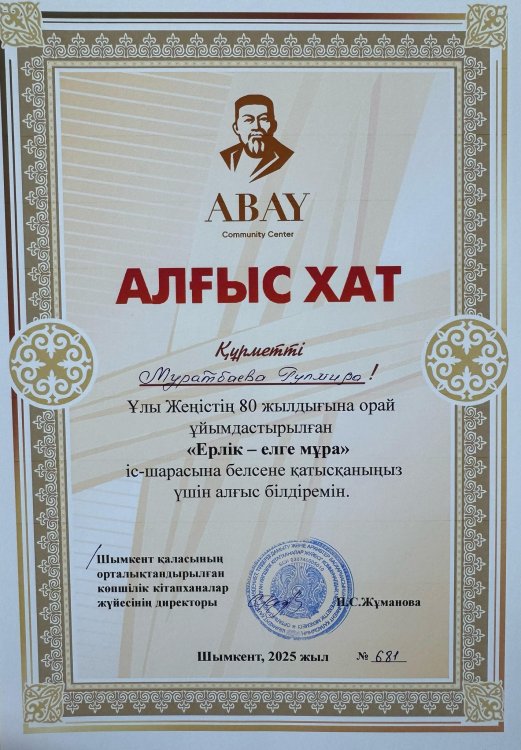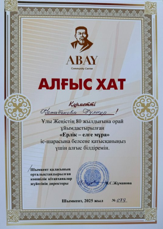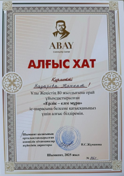 Ұлы Отан соғысы Жеңісінің-80 жылдыгына орай Әлия