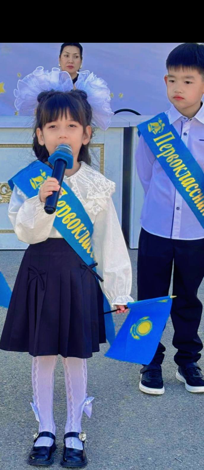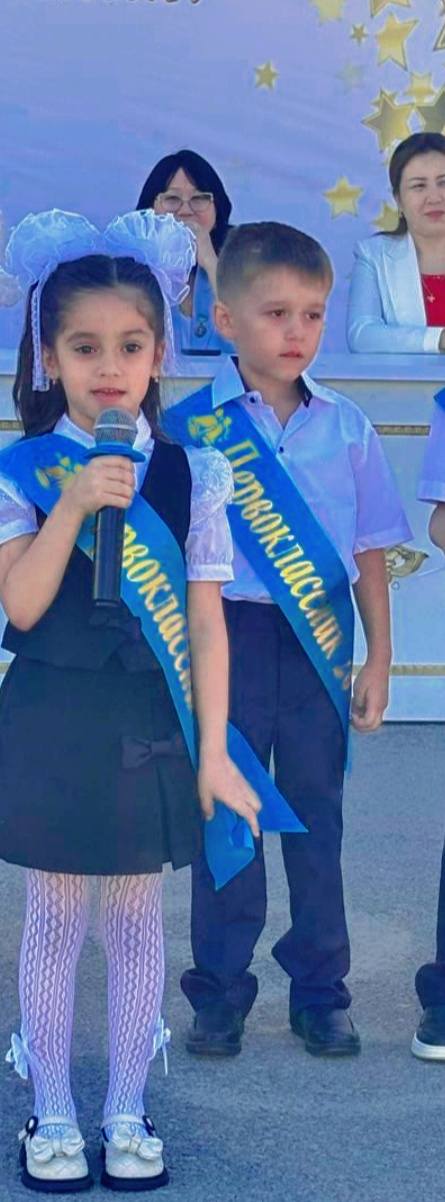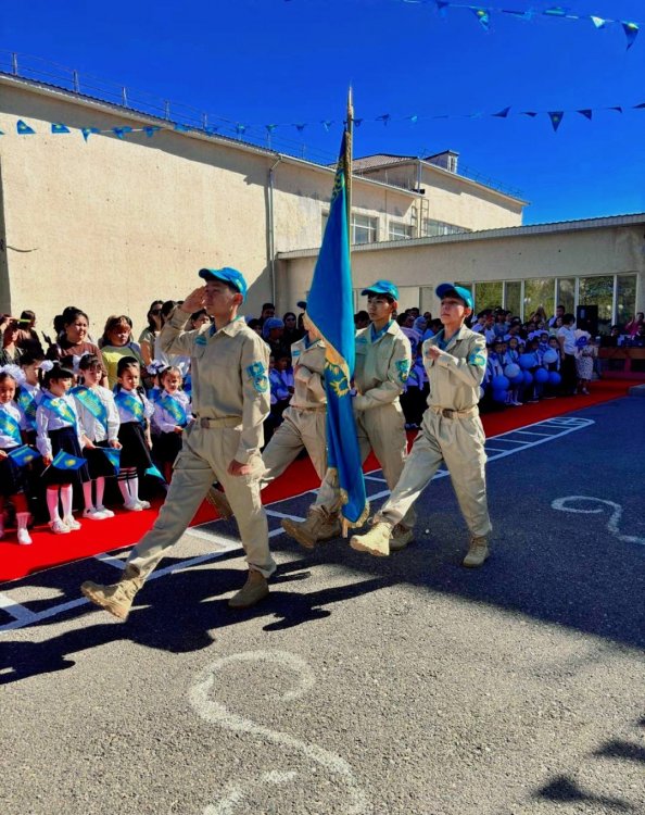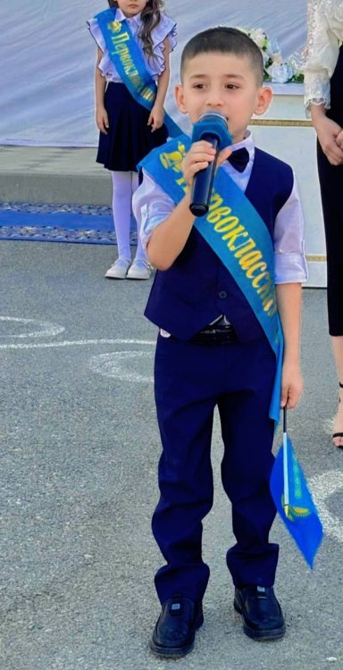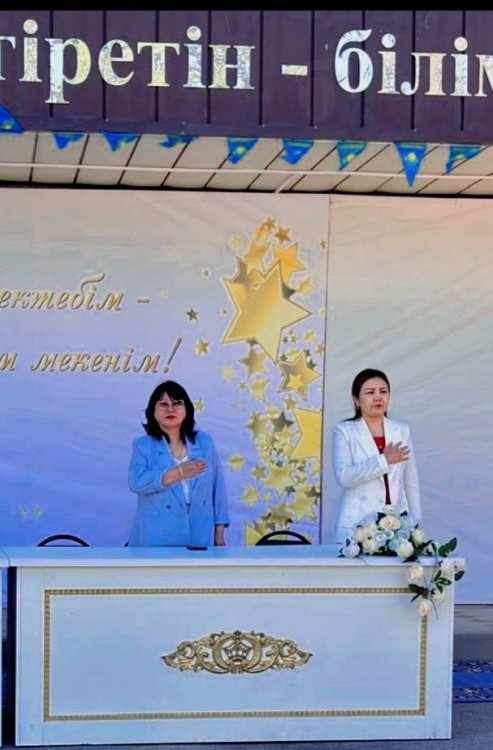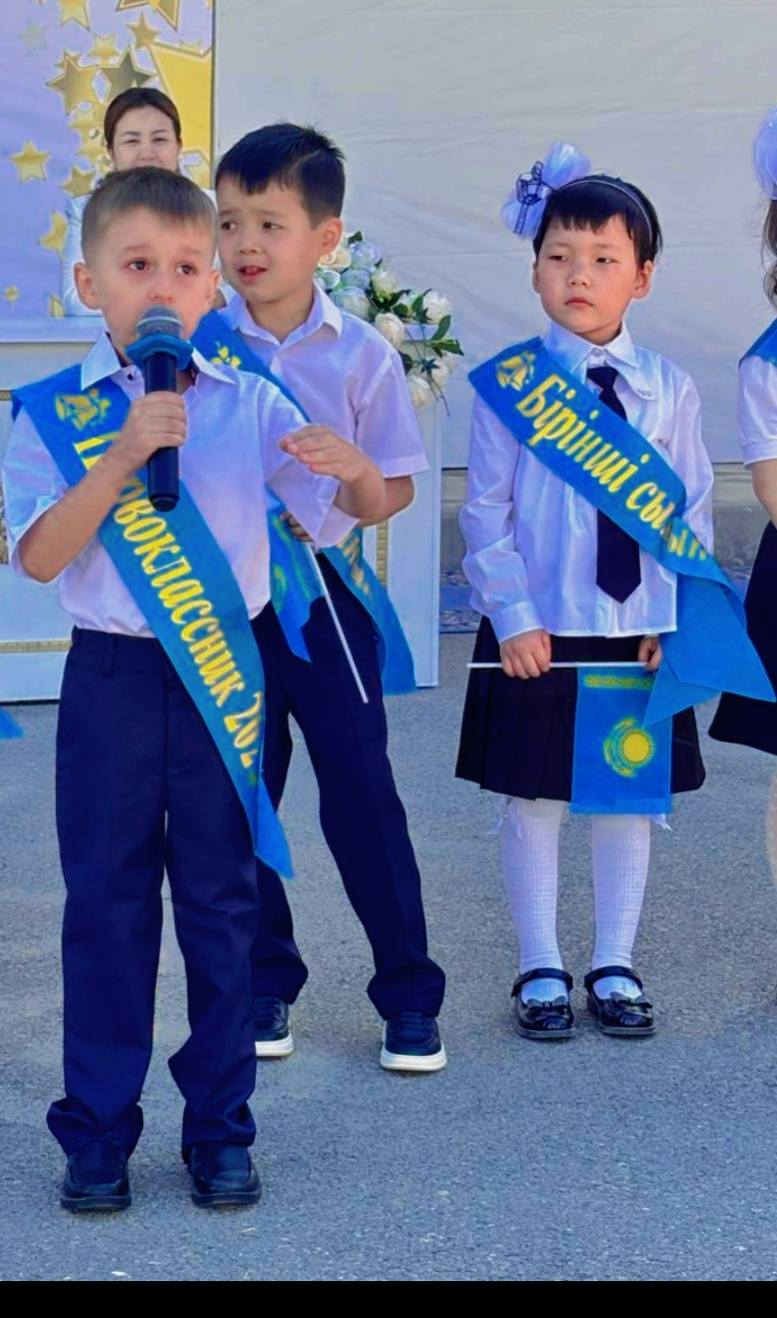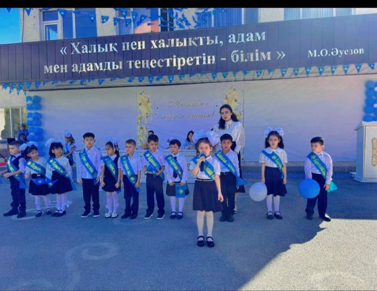 Бүгінгі таң шапағы шұғыла шашып, жанарлары жалтылдаған мектепке асыққан бүлдіршіндер, үмітін үкілеген ата-аналар, ертеңге нық сеніммен қараған ұстаздардың тілегімен астасып жатты. Мектебіміздің мәжіліс залында шарықтай шырқалған еліміздің Əнұраны, кішкентай бүлдіршіндердің лүпіл қаққан жүректері, əуелеген əн, күмбірлеген күй, ардагер ұстаздардың, ата-аналардың жүрек жарды лебіздері бүгінгі күннің сəні мен салтанатының ерекше екендігін айқындап тұрғандай. Бүгінгі күн жаңа оқу жылында жақсылыққа, ізгілікке, бақыт пен шаттыққа жас жеткіншектердің жүрегін толтыратын сəттердің көп болатындығын айқындап тұрғандай.
